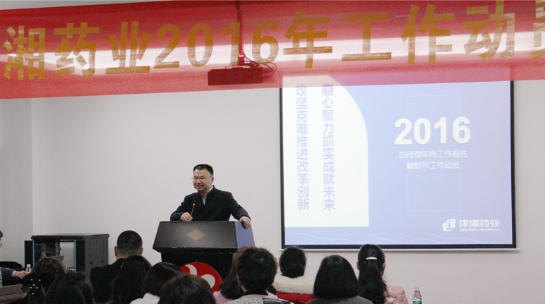 2016年2月13日上午10時,湖南津湘藥業(yè)2015年終總結匯報暨2016年工作動員大會在公司總部召開,公司主要領導、各部門主管和員工代表
